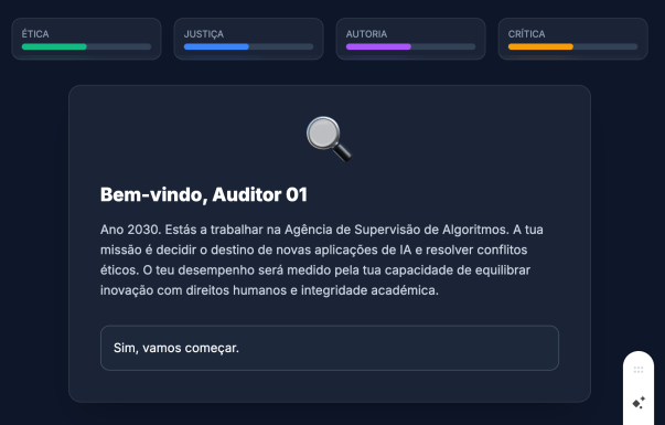 Pode-se usar a IA na escola? RESPONDER Joga este jogo para avaliar a tua capacidade de equilibrar inovação com direitos humanos e integridade académica. Clica na imagem para entrares na página do jogo. Partilhar isto: Share on X (Abre numa nova janela) X Partilhar no Facebook (Abre numa nova janela) Facebook Gosto Carregando...